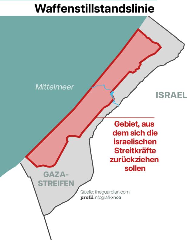 Von diesem Moment an feierten die Menschen in Israel und Gaza, israelische Oppositionspolitiker posteten Glückwünsche, Regierungschefs auf der ganzen Welt gratulierten und bedankten sich bei Präsident Trump. Manche in Khan Junis oder Tel Aviv sangen lauthals, andere konnten die frohe Botschaft nicht so recht glauben: „Ich hoffe, die Ruhe hält an, und der Krieg kehrt nicht zurück“, schrieb eine Frau aus Gaza über WhatsApp an profil.