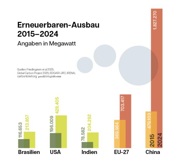 Dass China sich so prominent positioniert, ist neu. Das Land will das Vakuum füllen, das Donald Trumps Rückzug aus den internationalen Verhandlungen zum Klimaschutz hinterlassen hat. Während reaktionäre Kräfte in der EU den Green Deal Stück für Stück zerpflücken, tut sich das autoritäre China mit der Einigkeit leichter. „Auch bei uns gibt es viele industrielle Konflikte. Aber die Zentralregierung und Präsident Xi sagen sehr deutlich, dass wir in den nächsten fünf Jahren das neue Energiesystem beschleunigen müssen“, sagte Wang Yi, einer der chinesischen Verhandler bei der COP30, in Belém dem „Guardian“.