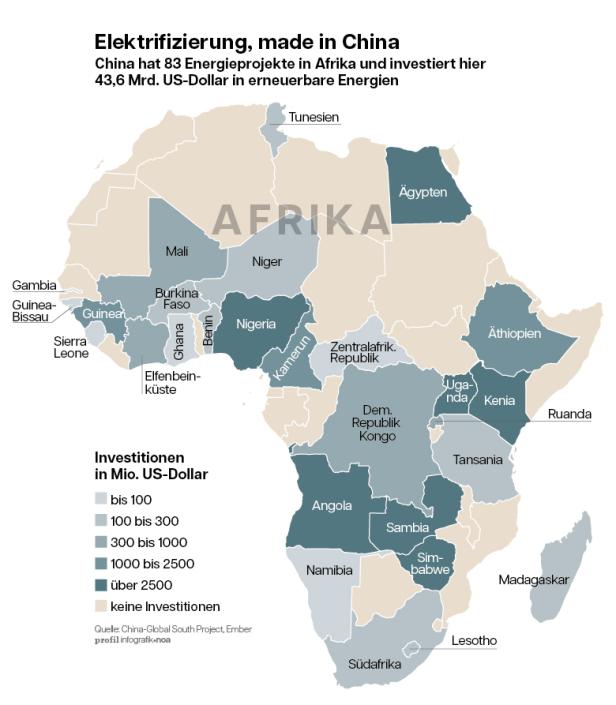 „China ist mittlerweile zu einer unverzichtbaren Schlüsselfigur im Aufbau von Afrikas Energieinfrastruktur aufgestiegen“, sagt Frangton Chiyemura von der britischen Open University, der zu Chinas Investitionen in Afrika forscht. „Chinesische Firmen mussten zwingend expandieren, weil der Wettkampf auf dem heimischen Markt so stark geworden ist.“ China produzierte erst kürzlich einen Überschuss an Solarpaneelen, die Preise fielen stark. In Afrika, aus dem sich europäische und US-Firmen zurückgezogen und ein Vakuum hinterlassen haben, treffen billige Preise auf hohe Nachfrage.