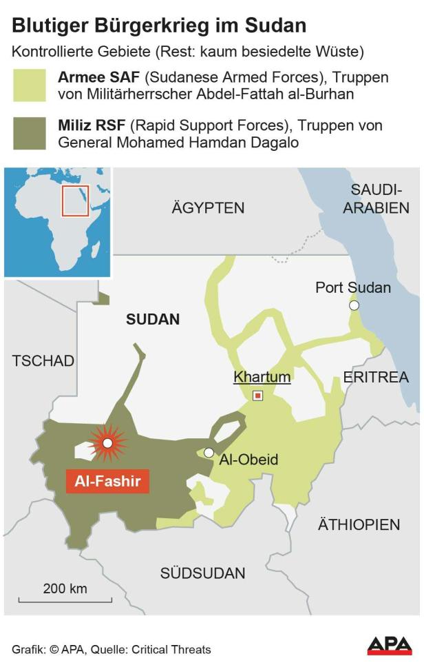 Al-Faschir konnte die RSF lange nicht einnehmen. Jetzt soll die Stadt und ihre Bewohner für ihren Widerstand bestraft werden. RSF-Milizionäre verbreiteten im Netz Videos, die zeigen, wie sie Flüchtende überfahren oder Gefangene aus nächster Nähe mit Pistolenschüssen hinrichten. Die Aufnahmen lassen sich nicht unabhängig verifizieren.