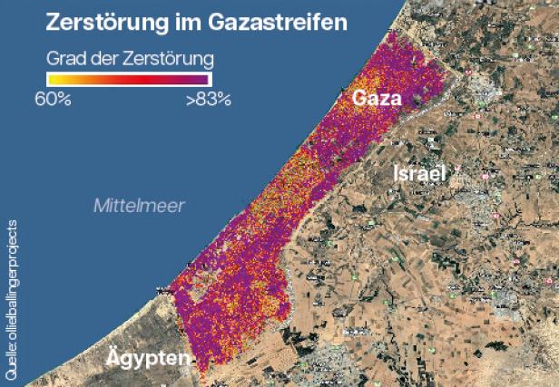 Satellitenbilder zeigen den Grad der Zerstörung der Stadt Khan Yunis. Sie wurde dem Erdboden gleichgemacht.