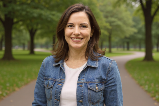 - Outdoor-Porträt in natürlichem Umfeld. Ein Motiv im Freien verleiht Frische und Offenheit. Beispielsweise steht der Mitarbeiter in einem Park oder vor einem modernen Gebäude. Das diffuse Tageslicht sorgt für weiche Schatten, und ein leicht unscharfer Hintergrund hebt das Gesicht hervor. Solche Aufnahmen passen besonders zu Unternehmen, die einen lockeren, umweltbewussten Eindruck vermitteln wollen.