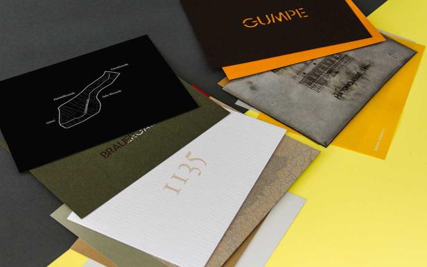 Sehr viel. Wir hatten schon Projekte aus den ungewöhnlichsten Materialien: eine Lampe aus einer Panzergranatenhülse, bedruckte Lasagneblätter für eine Hochzeit, eine Kokosnuss als Werbemailing. Gerade dieses Experimentieren hält uns kreativ. Und wenn ich etwas nicht selbst kann, kenne ich jemanden, der es kann: Buchbinder, Dreher, Tischler. Es gibt so viele großartige Handwerker in Österreich, die man nur kennen muss. Diese Vernetzung ist ein wichtiger Teil unserer Arbeit.