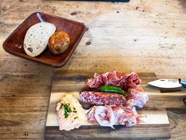 Zum Start ein paar kleine Schweinereien: Das „Bretschneider Brettl“ (Bild oben) ist das, was manch einer als Kärntner Jause bezeichnen würde. Zu dünn aufgeschnittenem Bauchspeck, Osso Collo und einer Hartwurst gesellen sich ein milder Liptauer und ein bisschen (zu wenig) Brot. Das Grammelpogatscherl sorgt für den burgenländischen Brückenschlag. Ein bisschen mehr Gemüse hätte dem Ganzen vielleicht nicht geschadet, aber in Summe ist das schon ein netter Einstieg. Auf nette Weise konsequent ist das Beef Tatar. Klassisch gehackt, mit Gurken, Kapern und Zwiebeln vermengt sowie von einem angenehm säuerlich abgeschmeckten Vogerlsalat-Kranz umschlungen. Ein bisschen Butter noch zum getoasteten Schwarzbrot, und fertig ist der Spaß.