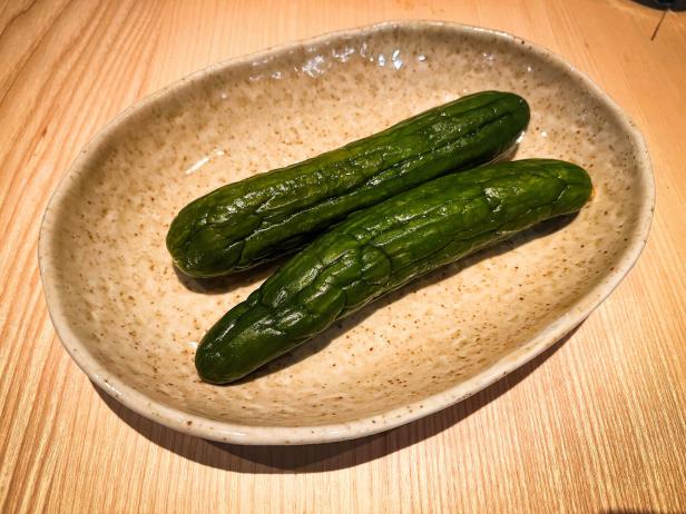 Generell ist man im „Chicken Karate“ gerne schärfer unterwegs: Das „Karate Cabbage“ wurde roh mit einem Wasabi-Zitrus-Dressing und Daikon-Rettich vermengt. Das wird mit der Zeit zum Krenreiben scharf – aber es macht auch süchtig. Die Dirty Fries sind knusprig ausgebacken, davon hat man aber nicht mehr viel – Currysauce und Sour Creme darüber erzeugen eine (gewollt) ertränkende Wirkung. Die im Haus eingelegten, moderat säuerlichen Gurken heißen „Sensei Pickles“ (Bild oben) – und sind so meisterlich, wie eine Gurke nur sein kann.