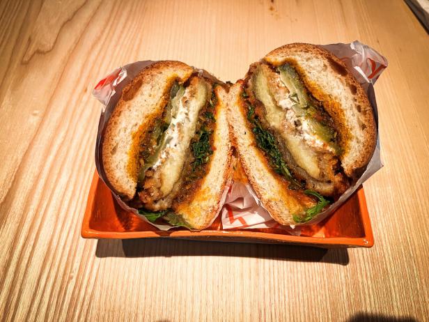 Der bereits erwähnte „Nasu Tonkatsu Burger“ (Bild oben) tauscht das Hendl in der Panade gegen eine Aubergine aus. Das Gemüse selbst wäre wohl gerne von Haus aus so pikant, wie es das ihm nachempfundene Emoji ist, es bleibt aber in der Realität halt dann doch oft eine trockene Angelegenheit. Bei richtiger Bearbeitung, wie der dem österreichischen Gaumen besonders schmeichelnden Panier-Frittierung, ist es aber ebenfalls genießbar. Der Burger schielt mit einer aus getrockneten Tomaten hergestellten Salsa in Verbindung mit Rucola in Richtung Italien. Eine sichere Bank also – top abgestimmt mit Tonkatsu-Sauce.