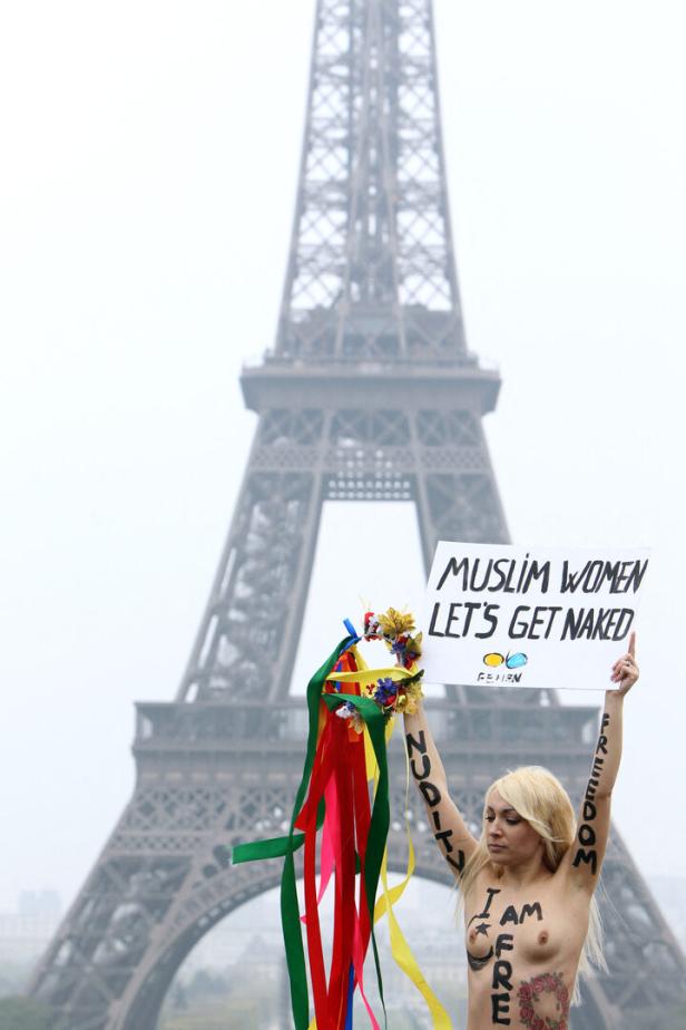 Sie wären überrascht, wie viele Frauen in muslimischen Ländern Femen kennen. Viele saudische und iranische Frauen versuchten früh, mit uns in Kontakt zu treten, weil sie von den Bildern ausländischer Proteste sehr inspiriert waren. Die Bewegung iranischer Frauen, die öffentlich ihr Kopftuch abnehmen, ist an sich schon ein Akt der Befreiung. Im Fall von Femen ging es um mehr: Anfangs versuchten wir auch, die Vorstellung von ukrainischen Frauen zu verspotten, die im Sextourismus als Barbies wahrgenommen wurden, als Blondinen mit übertriebenem Make-up, High Heels und kurzen Röcken. Alle sahen uns nur als Körper. Es war ein Reflex: Wir wollten diese Körper so zeigen, wie man uns in der Öffentlichkeit sehen wollte. Aber diese Körper sollten nicht schweigen. Deshalb war die Schrift auf unseren nackten Brüsten ein wichtiges Mittel: Die Puppe läuft Amok, die Marionette hat die Fäden durchtrennt und rennt nun unkontrollierbar durch die Welt. Und sie schweigt nicht, denn man kann die Worte nicht von unseren Körpern wischen. Sie sprachen.