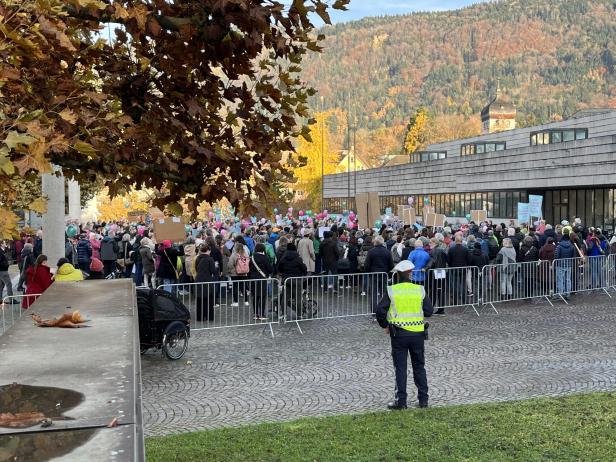 Rund 400 Menschen demonstrierten vor dem Landhaus in Bregenz gegen die Spitalsreform.