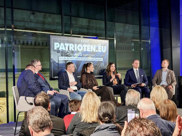 Die Alternative für Deutschland (AfD) ist mittlerweile fast so etwas wie die Schwesterpartei der FPÖ. Parteichefin Alice Weidel und Herbert Kickl begegnen einander mit Wertschätzung. Allerdings ist die AfD selbst den „Patrioten“ zu extrem und daher nicht Mitglied der Fraktion. Zur Veranstaltung nach Wien ist dennoch ein Vertreter gereist, der Bundestagsabgeordnete Sebastian Münzenmaier, ein gebürtiger Darmstädter, der sogar über persönliche Erfahrungen mit NGOs verfügt: Als Zivildiener war er beim Mobilen Sozialen Hilfsdienst.