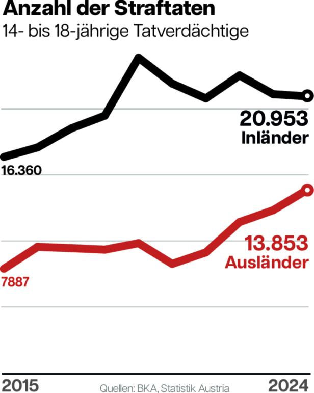 Jugendkriminalität wachse sich oft aus, sagt Kriminalsoziologin Veronika Hofinger. Darauf deuten auch Zahlen über junge Gefängnisinsassen hin. Aktuell verbüßen 170 Jugendliche zwischen 14 und 18 eine Haftstrafe. Im Jahr 2025 waren es 125. Im Alter zwischen 18 und 21 ist die Zahl der Häftlinge im Vergleich zu damals aber auf 378 gesunken.