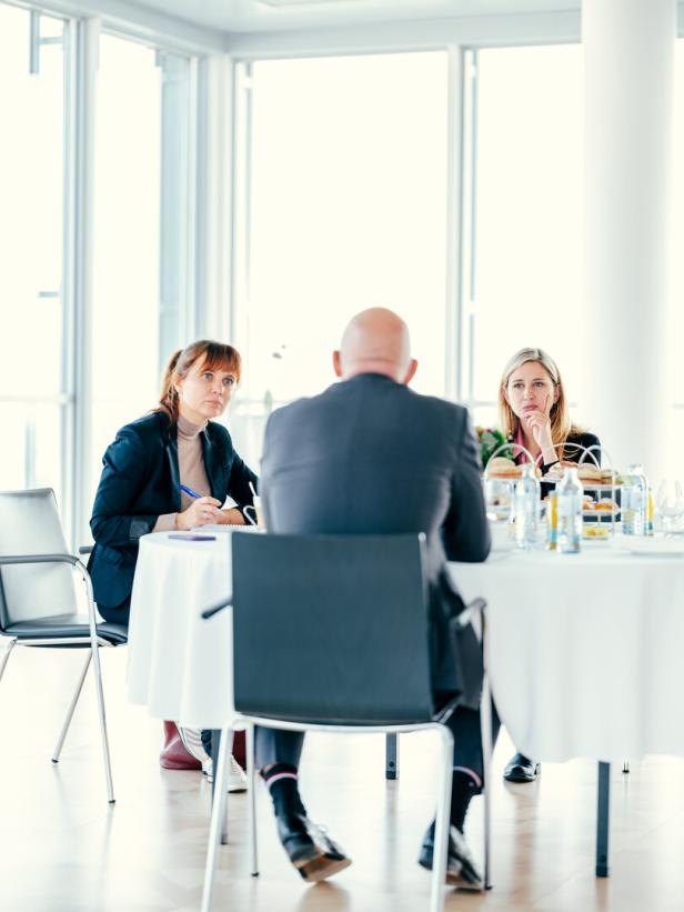 Ralph Müller im Interview mit profil-Wirtschaftschefin Marina Delcheva und Chefredakteurin Anna Thalhammer