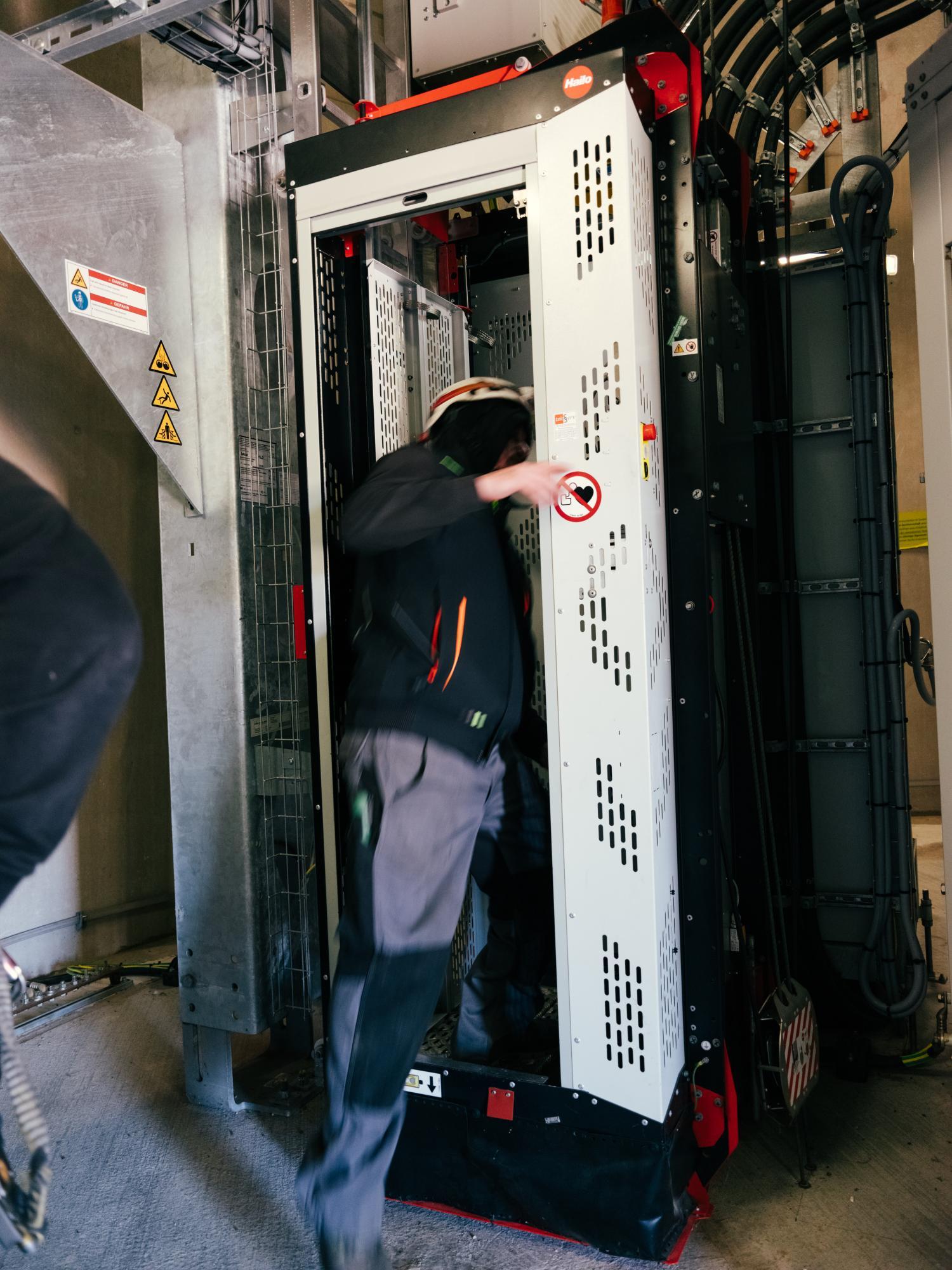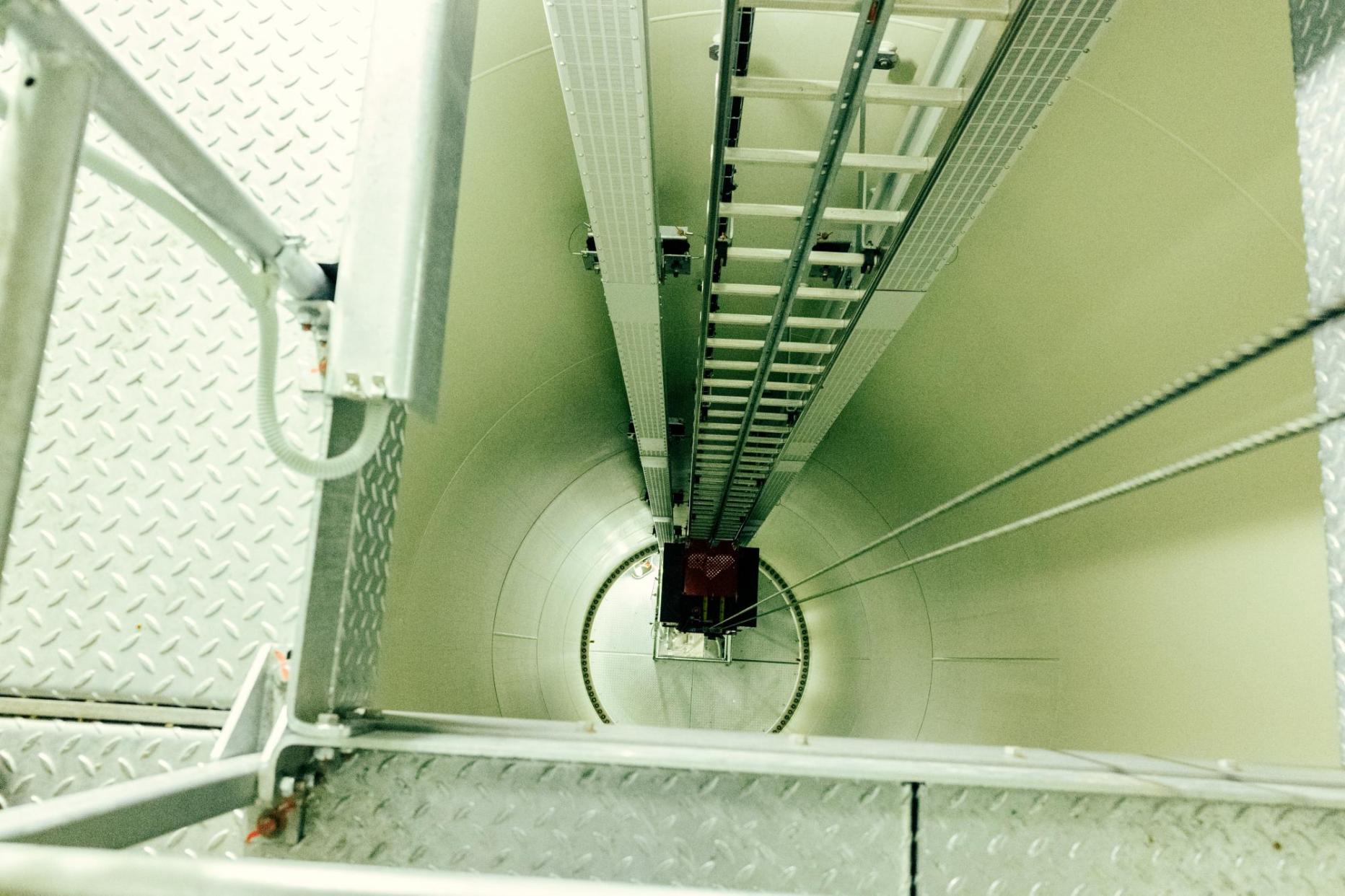 Wir steigen in einen Materialaufzug. Er wird uns 136 Meter innerhalb der Anlage nach oben bringen. Es ist eng, Winter bedient den Aufzug mit einem Totmannschalter. Bewegt er den Finger weg, würde der Lift stehen bleiben. Die Fahrt dauert lange. Schneckentempo. Genug Zeit, um darüber zu sprechen, warum die Branche mit dem neuen Gesetz – sollte es so beschlossen werden – so hart ins Gericht geht.